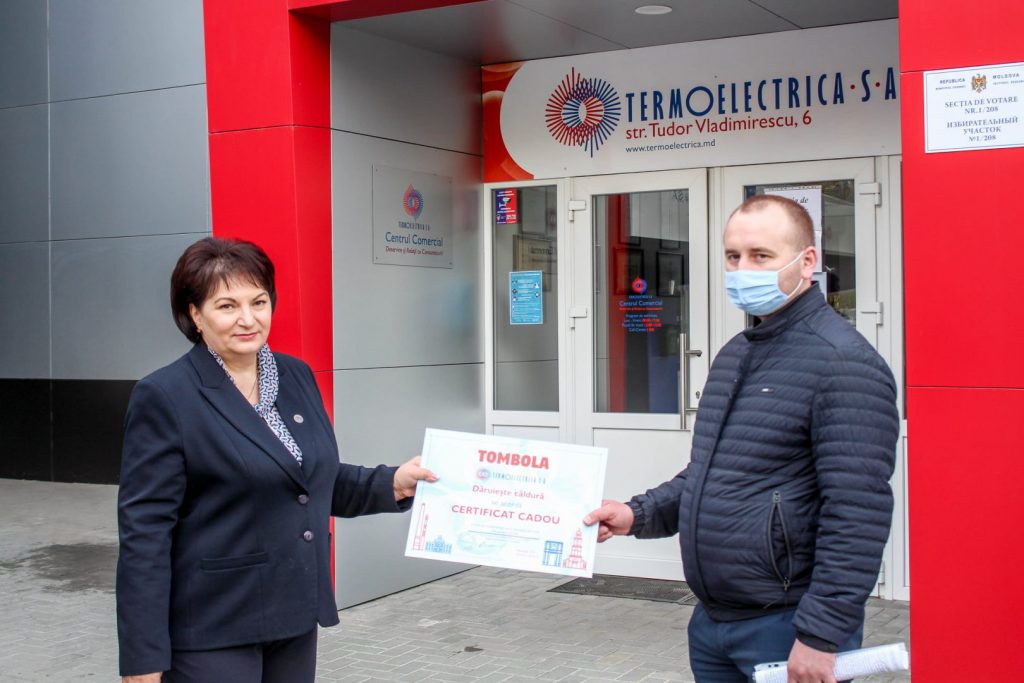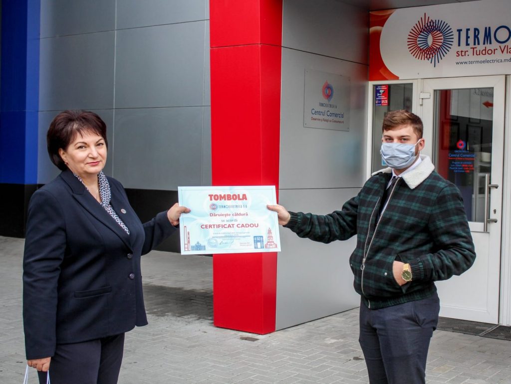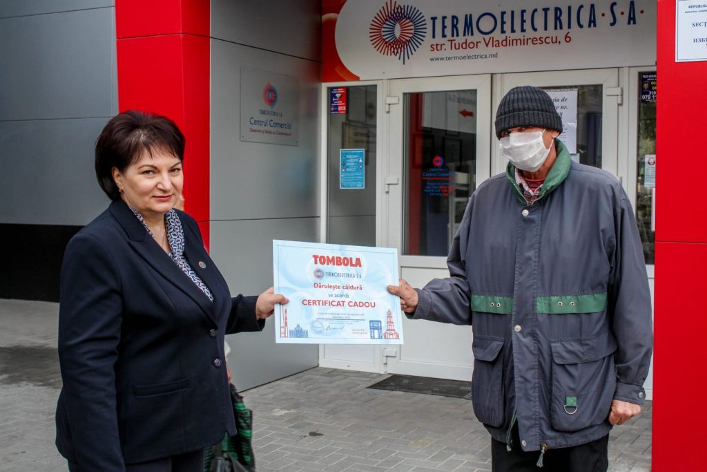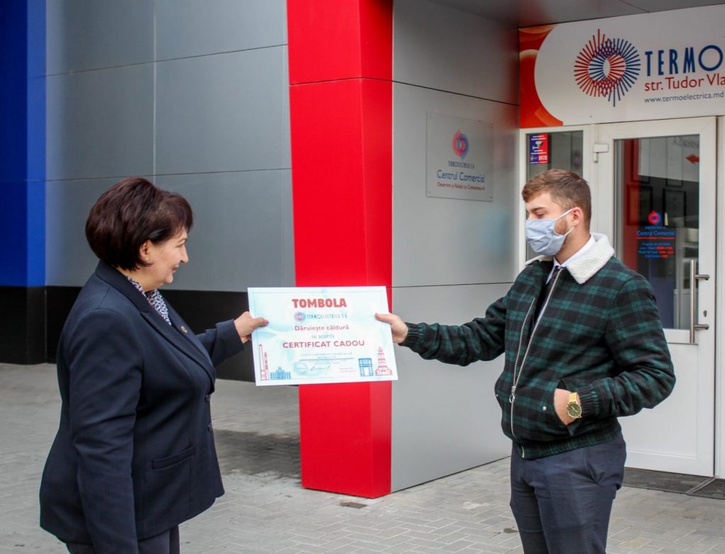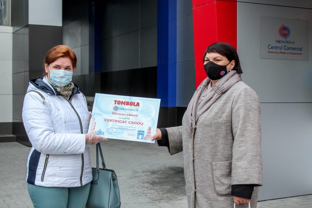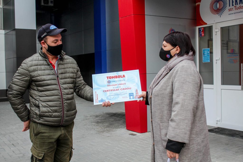Certificatele în valoare de o lună de consum gratuit de încălzire și apă caldă, pentru luna decembrie 2020, au fost înmânate de către directorul general al Termoelectrica, Veaceslav Eni, și vicedirectorul general, Silvia Pascaru.