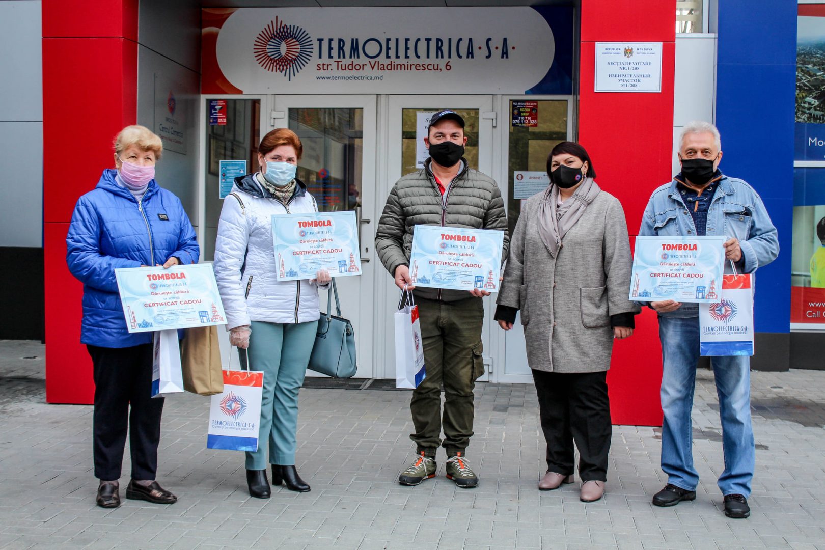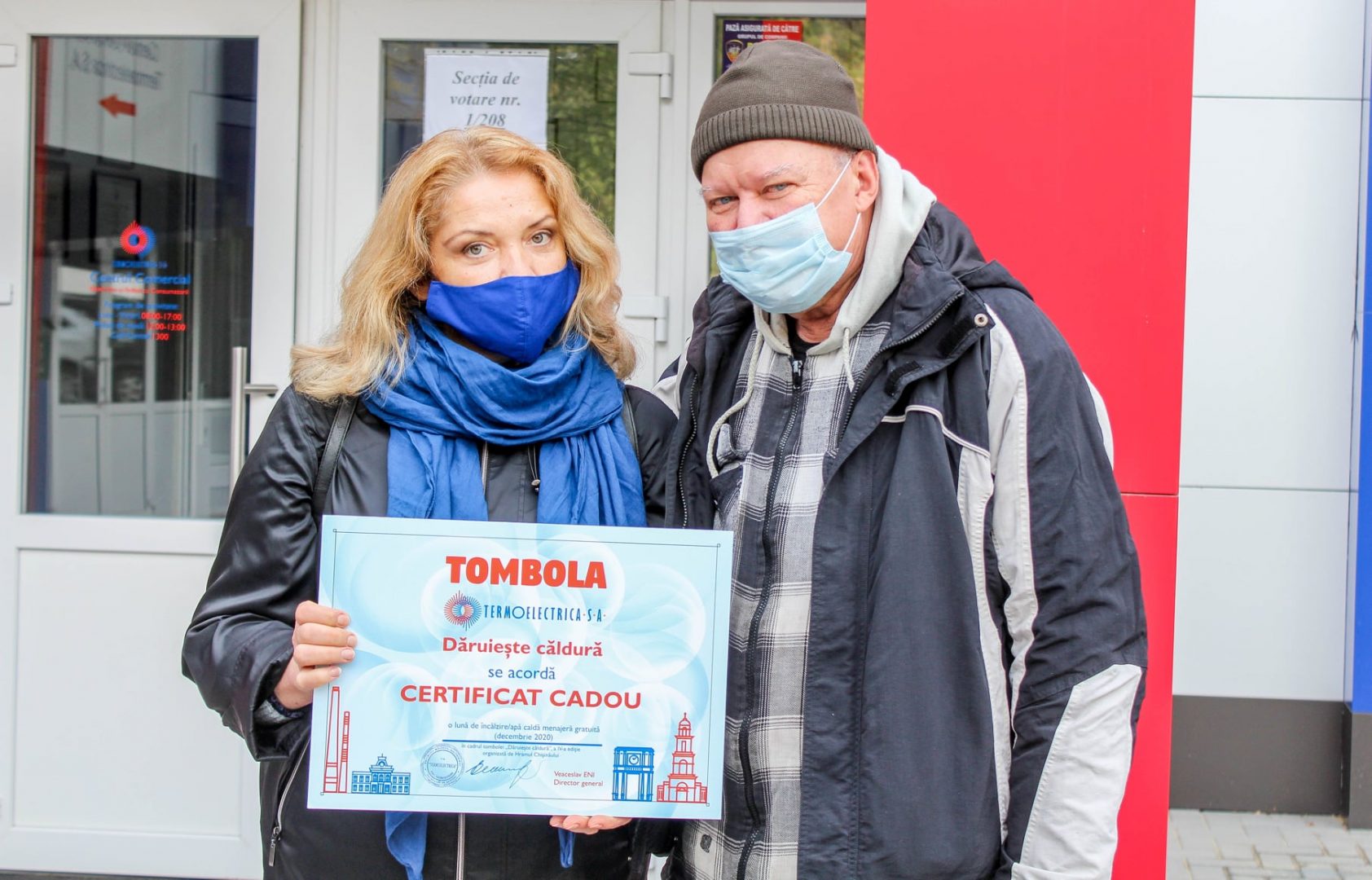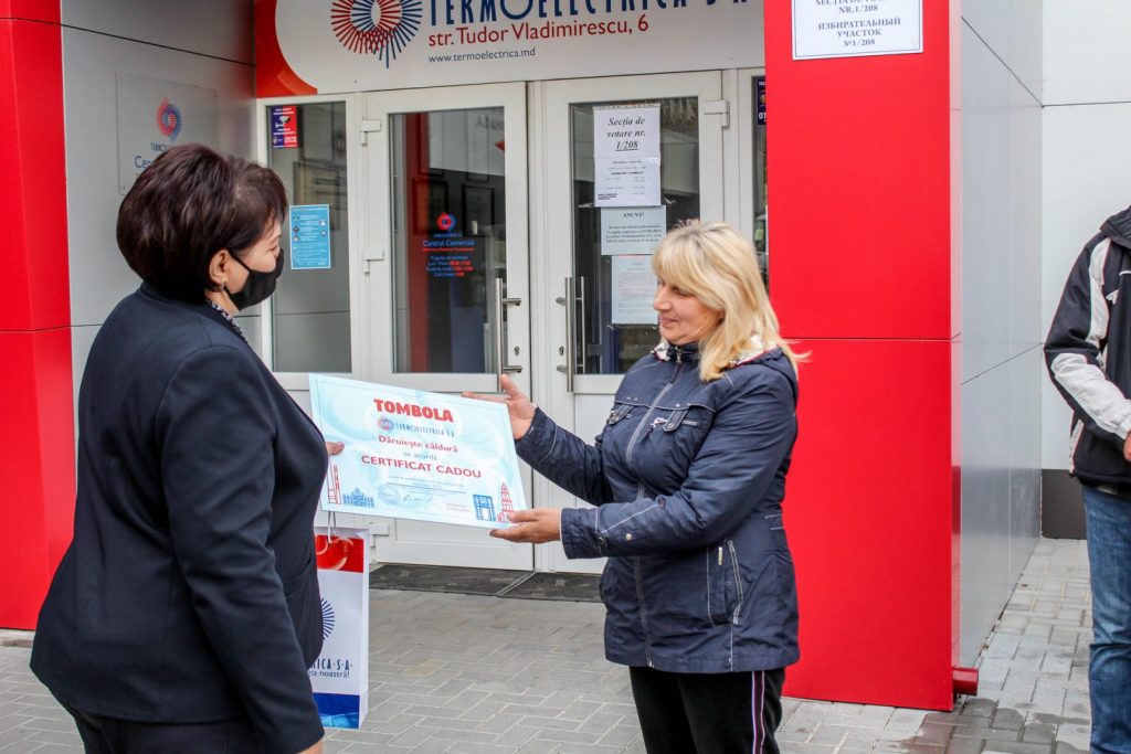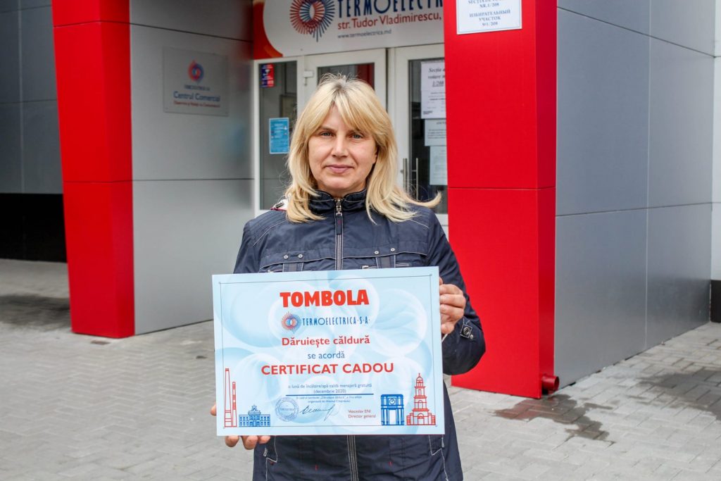Certificatele în valoare de o lună de consum gratuit de încălzire și apă caldă, pentru luna decembrie 2020, au fost înmânate de către directorul general al Termoelectrica, Veaceslav Eni, și vicedirectorul general, Silvia Pascaru.