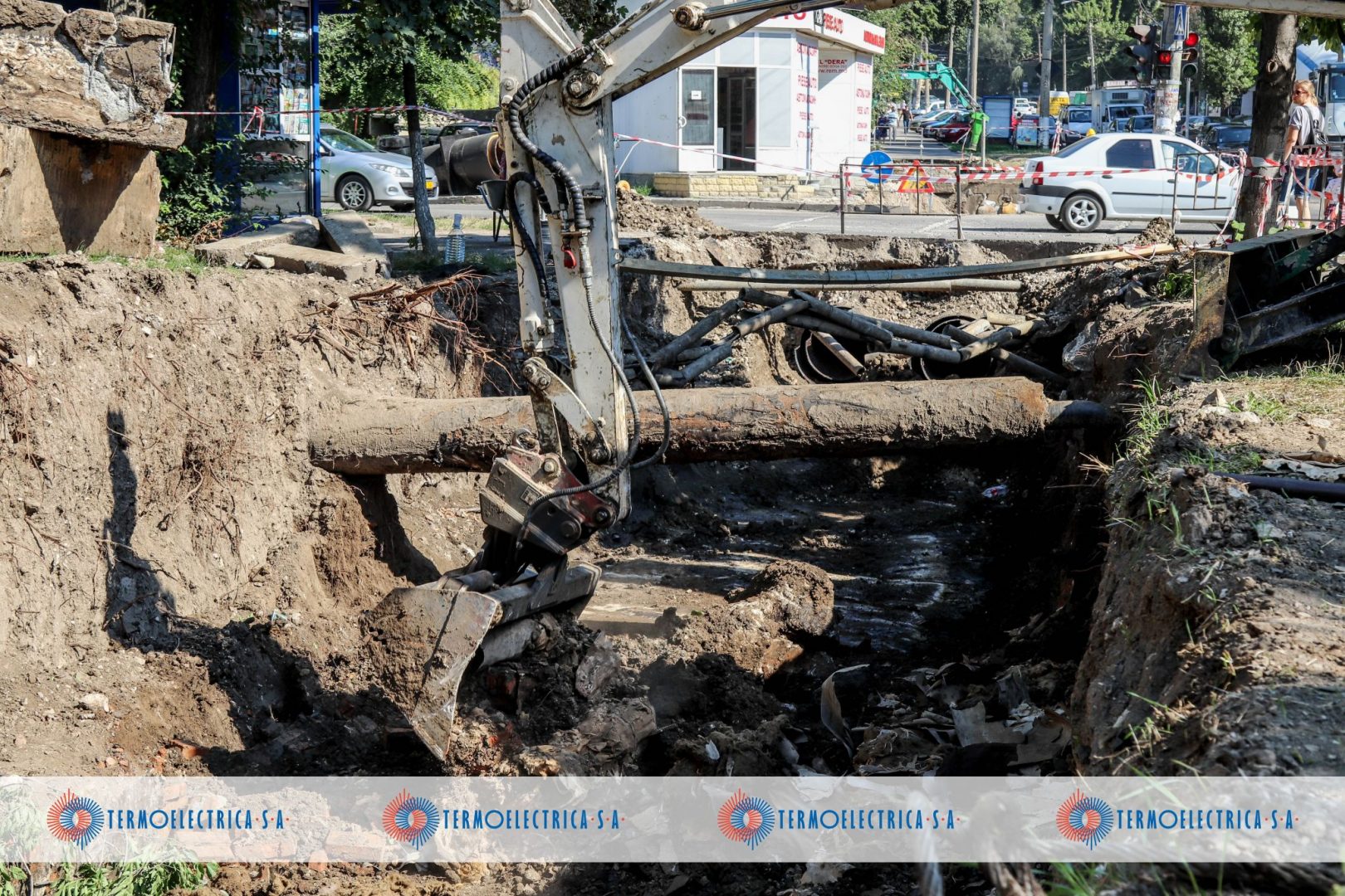 – Schimbăm o porțiune de tronson defectat pe rețeaua de apă caldă menajeră din str. M. Sadoveanu, 20. Lucrările urmează să fie finalizate până la ora 17:00.