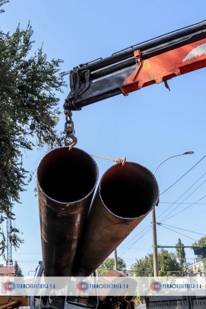 Str. Vadul lui Vodă: Continuăm lucrările de modernizare a unui tronson de rețea termică magistrală, cu DN 1000 mm, pe o lungime de 200 metri, care alimentează cu energie termică peste 25% din mun. Chișinău. Pe parcursul zilei de astăzi continuă demontarea rețelelor vechi și avariate, care vor fi înlocuite cu altele noi, eficiente energetic. Această lucrare va fi finalizată la sfârșitul lunii septembrie.