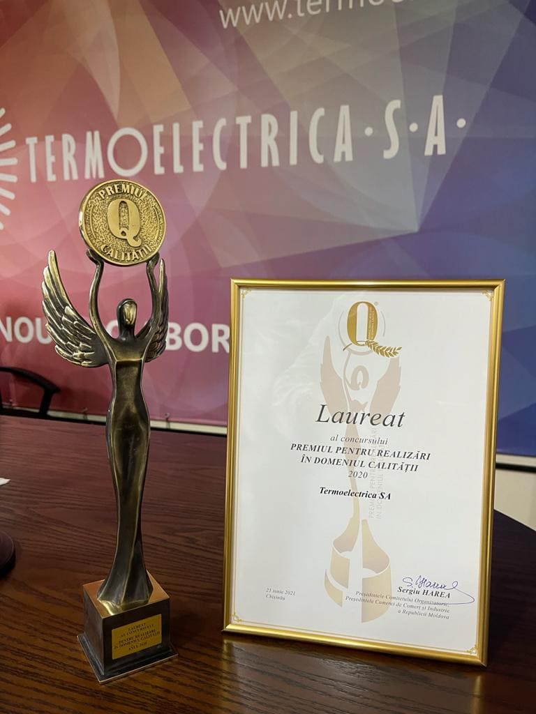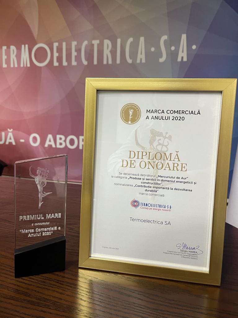 Termoelectrica a fost premiată la Gala Businessului Moldovenesc cu două distincții valoroase: Mercuriul de Aur la nominalizarea „Contribuție importantă la dezvoltarea durabilă” și statueta Zeița Calității, pentru realizări în domeniul calității, în cadrul concursurilor „Marca Comercială a anului 2020” și „Premiul pentru realizări în domeniul calității produselor și serviciilor” pentru anul 2020.