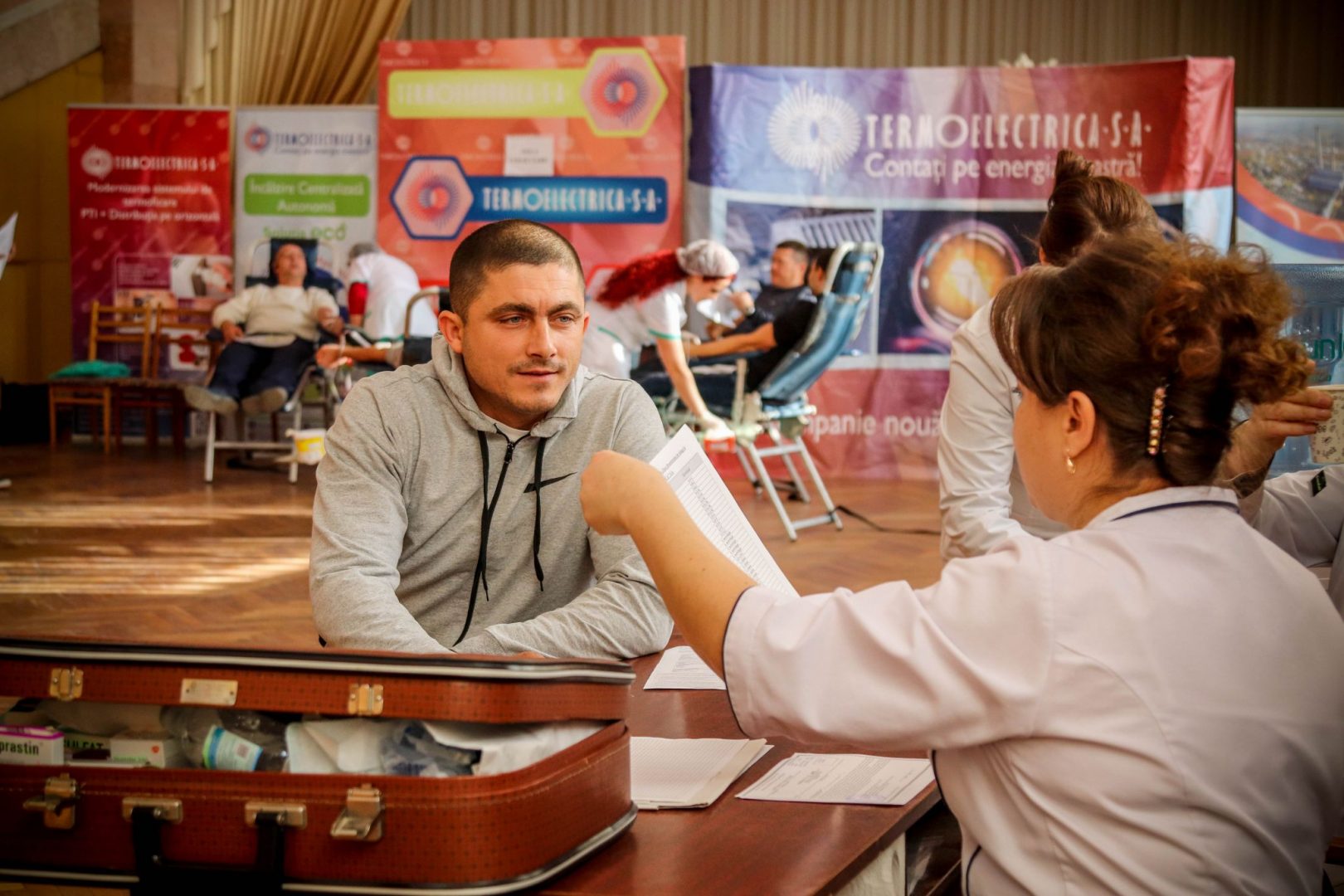 În cadrul întreprinderii Termoelectrica S.A. a fost amenajat de către Centrul Național de Transfuzie a Sângelui (CNTS) un punct mobil de colectare, la care angajații întreprinderii au făcut cozi. Preventiv, aceștia s-au înscris într-o listă, prin care și-au manifestat intenția de a dona sânge benevol. Potrivit lor, procedura de colectare a sângelui este una obișnuită și nu e dureroasă deloc.